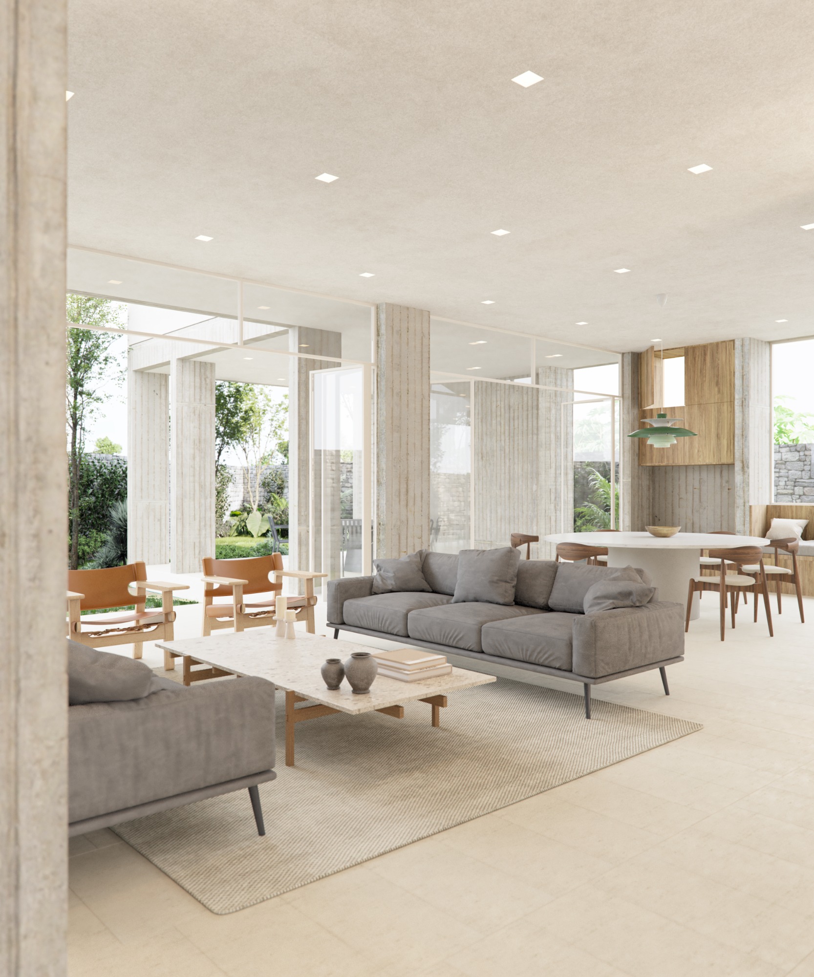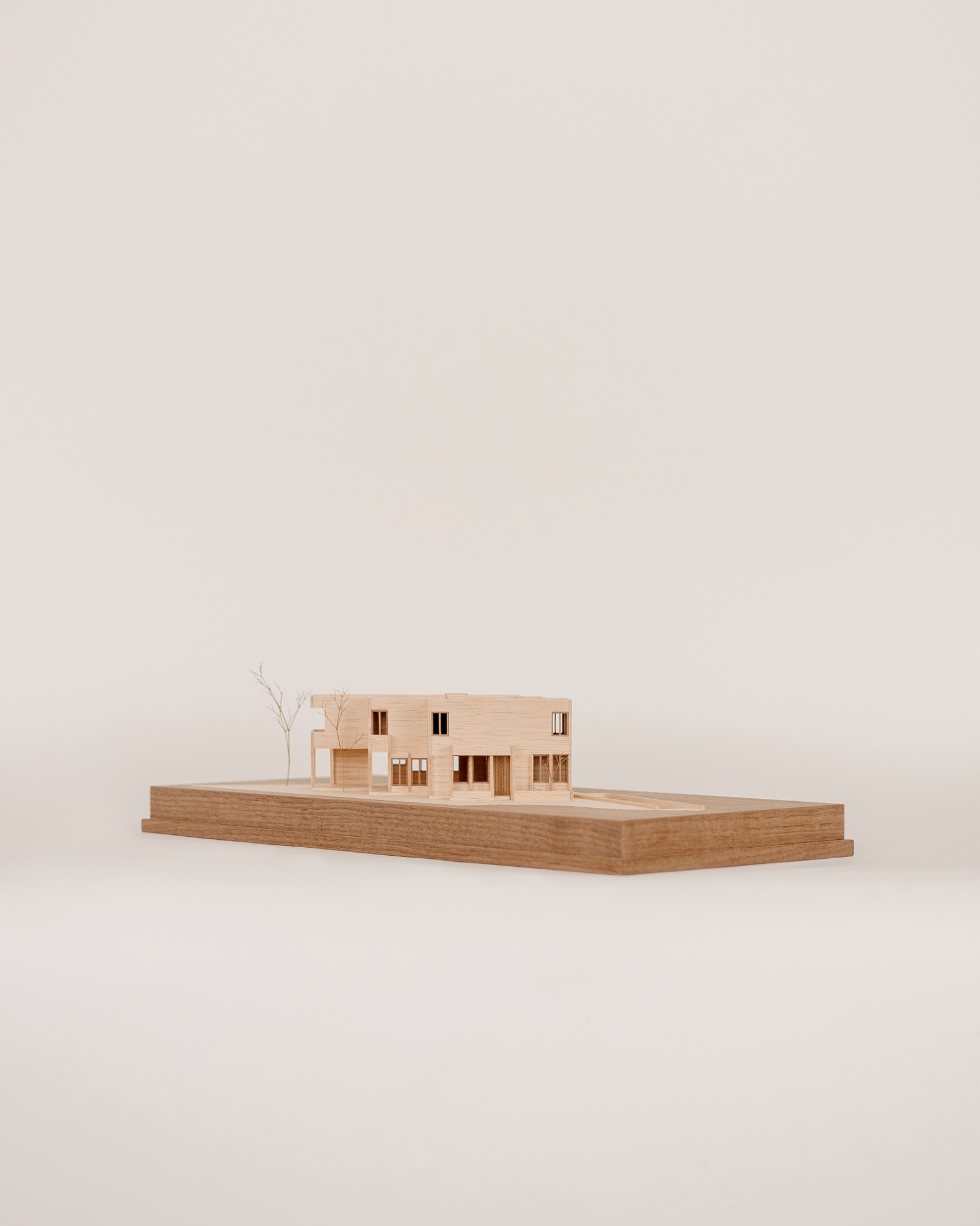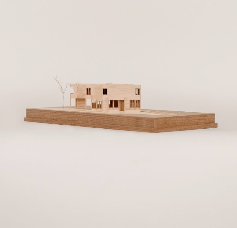 Una vez decidida la forma en como se desplanta el proyecto, se tomó la decisión — para hacer más eficiente la estructura y más permeable la planta baja— de hacer una trama de metro y medio de separación entre cada columna. De esta manera la planta baja se torna en una especie de pórtico que sostiene a la planta alta.