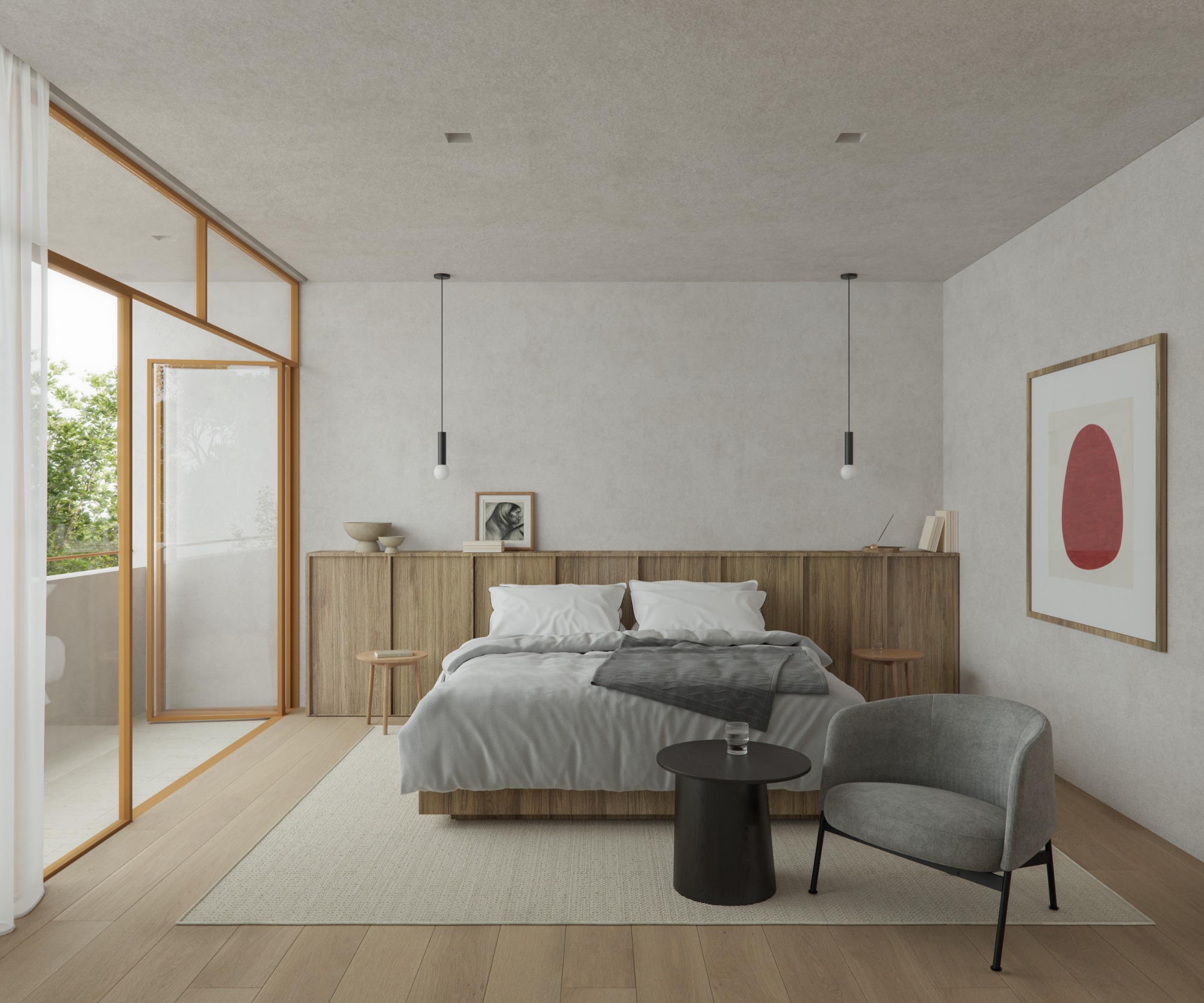 The orientation and views of the site were key to the design of this house. The site is located at the upper part of a ravine, which is why framing the views of the ravine became essential. A decision was made to slightly rotate the building footprint and to step the volumes that compose it. In this way, a greater number of openings can be achieved to frame the different views.