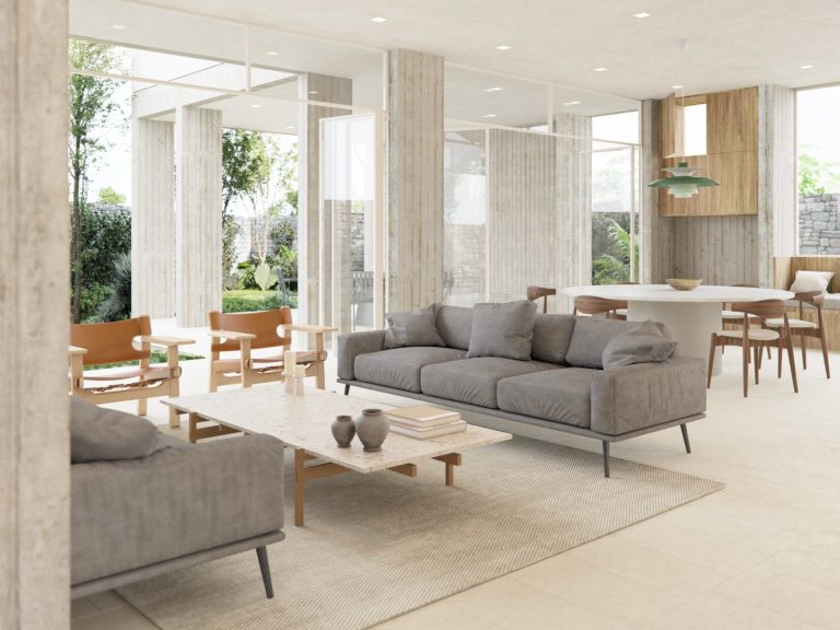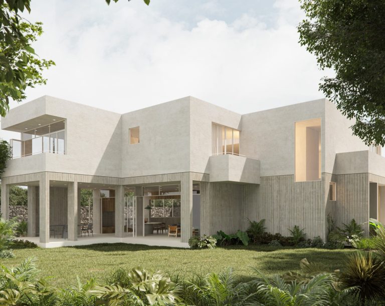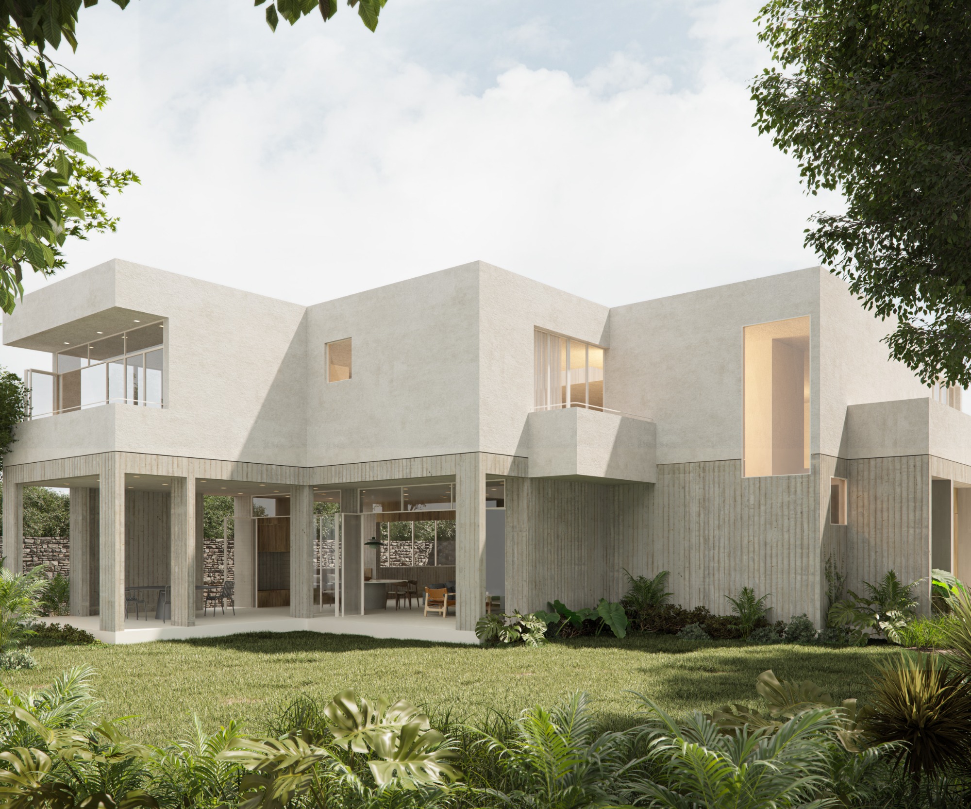 Finally, to make the difference between the two levels of the house more evident, different materials are used for each one; leaving the ground floor exposed and the upper floor covered.